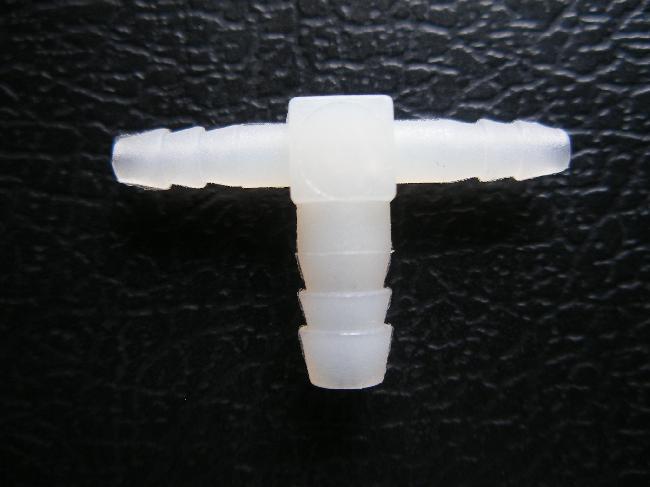 Adaptor plastic tip T cu diametrul de 2 mm pe doua brate pentru tubulatura de 4 si diametru de 4 mm pe un brat pentru tubulatura de 6.
